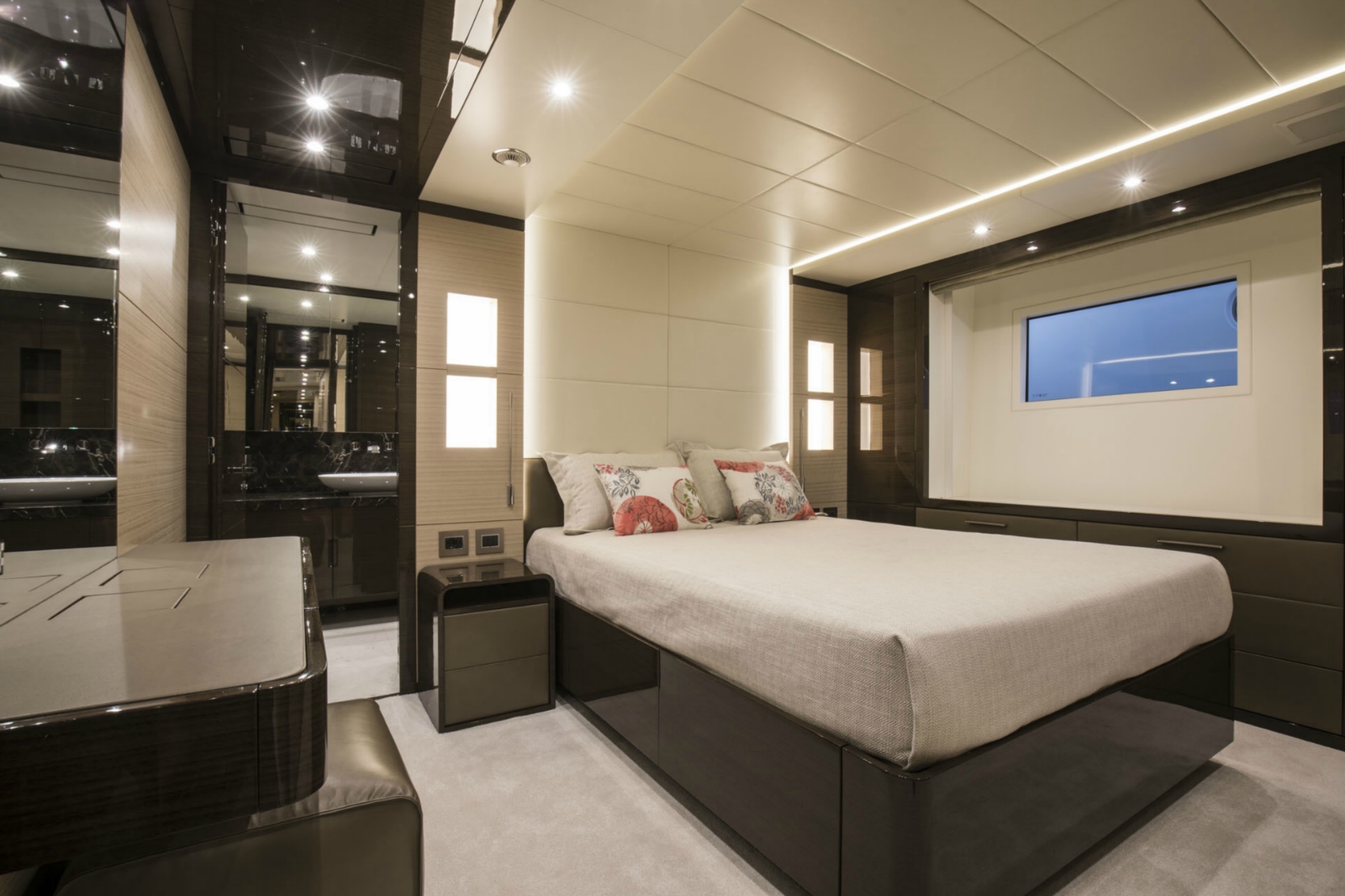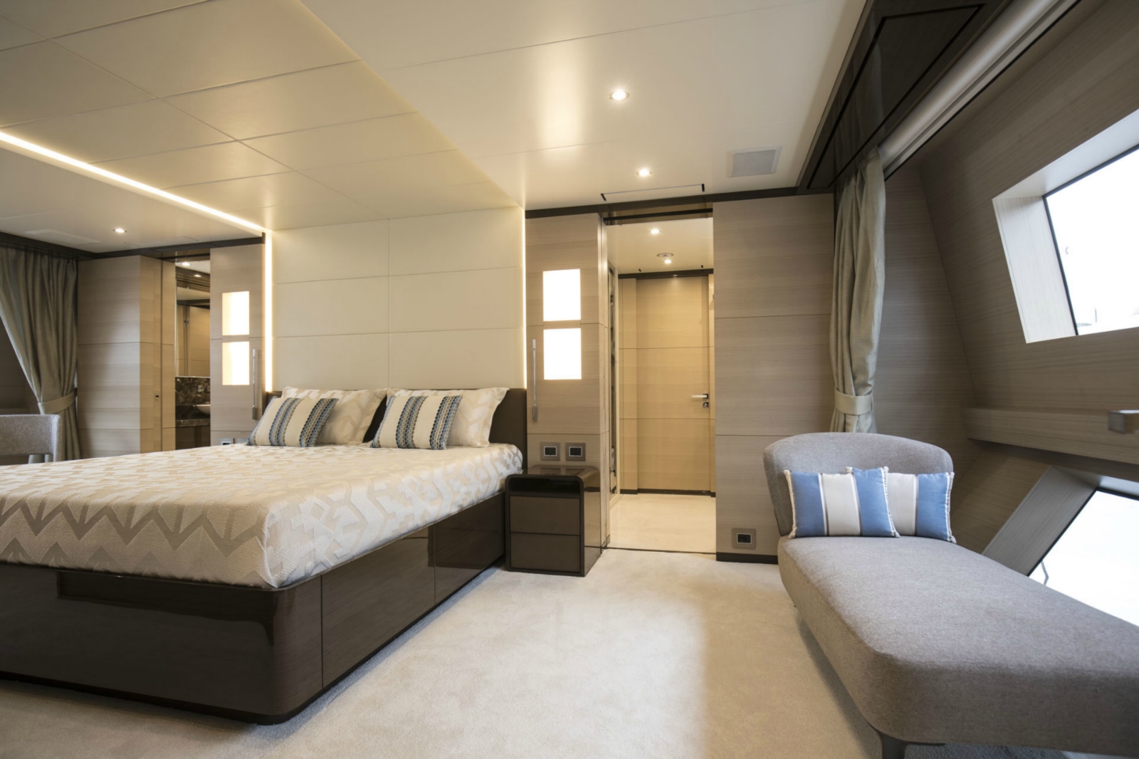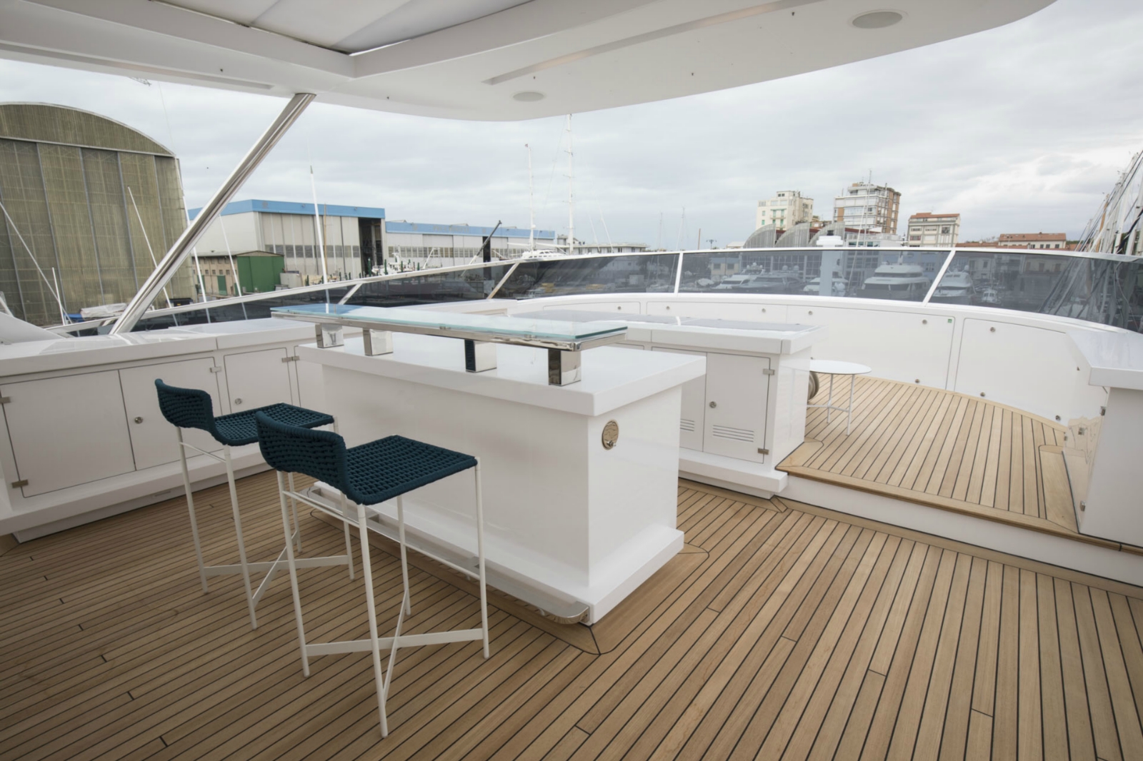 The extensive full-height windows guarantee light-filled interiors and a seamlessly evocative view of the sea, while imprinting the exteriors designed by JNCN YACHTS with unprecedented dynamism. The bridge wings that retracting terrace in the Owners suite, unique in a yacht of this length, provides yet another area for privacy and relaxation at the water’s edge.