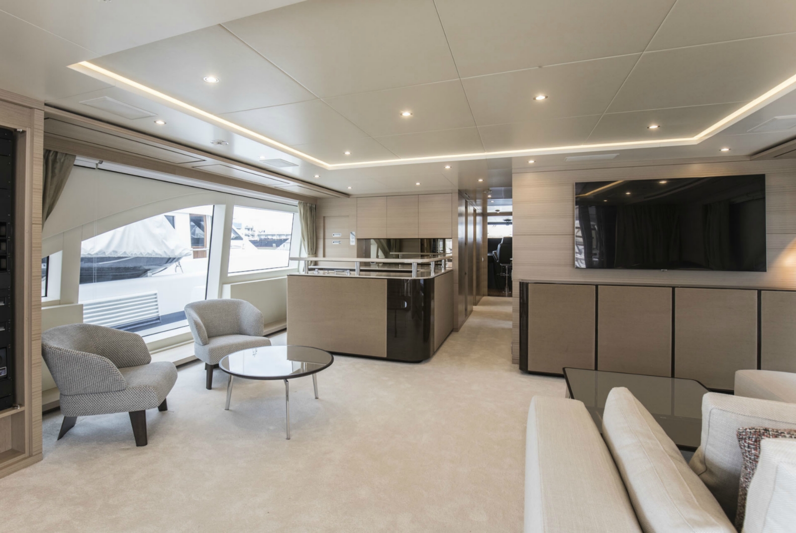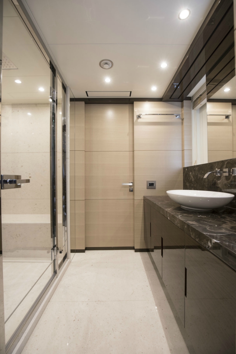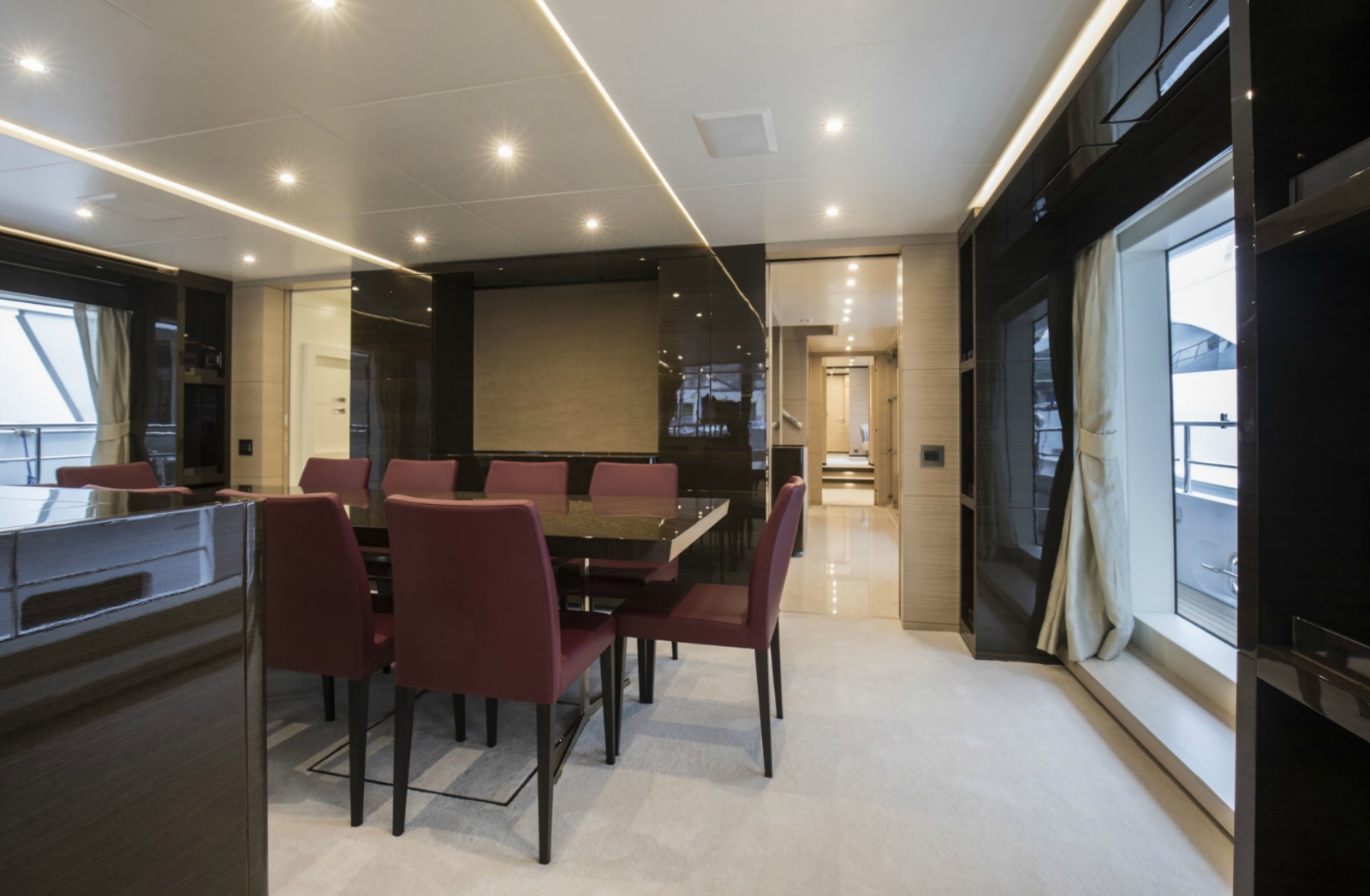 The extensive full-height windows guarantee light-filled interiors and a seamlessly evocative view of the sea, while imprinting the exteriors designed by JNCN YACHTS with unprecedented dynamism. The bridge wings that retracting terrace in the Owners suite, unique in a yacht of this length, provides yet another area for privacy and relaxation at the water’s edge.