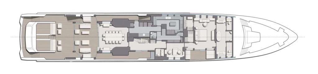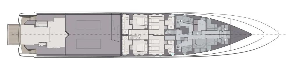 Cabins: Full-beam owner’s stateroom, two double guest suites and two twin guest suites