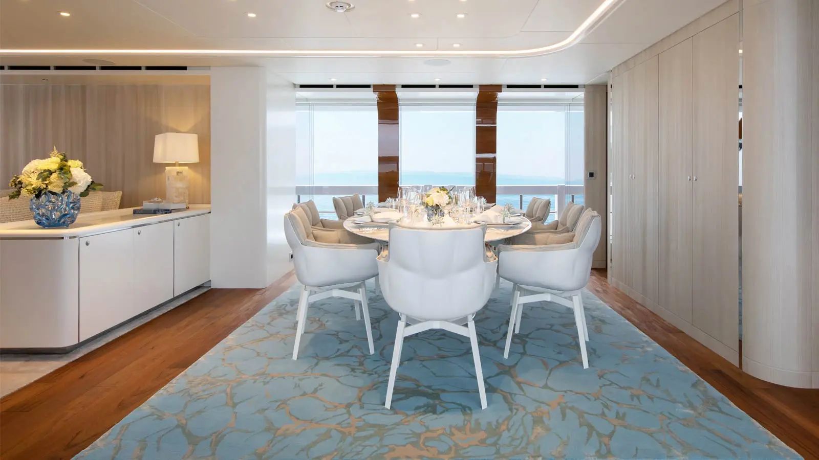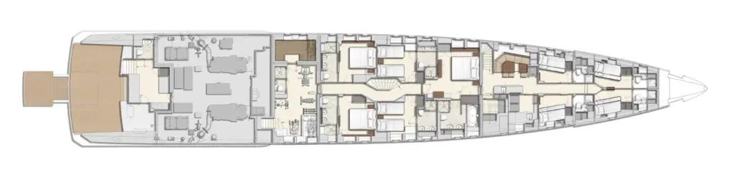Cabins: Full-beam owner’s stateroom, one full-beam VIP suite, two double guest suites and two twin guest suites