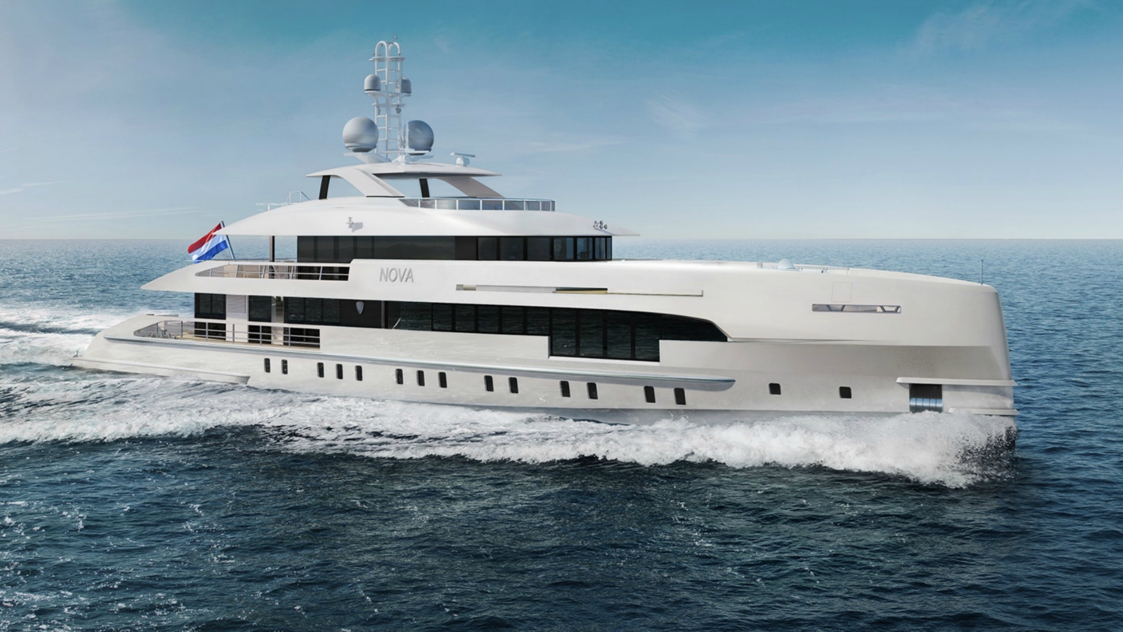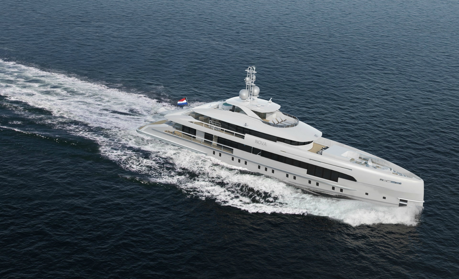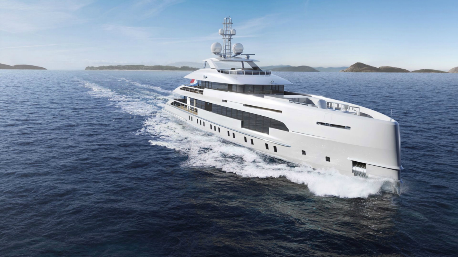The exterior of this 50-metre yacht is designed by Omega Architects and it’s our second yacht with hybrid propulsion. In this case ‘Hybrid’ means that the yacht can draw on two sources of power for propulsion: diesel mechanical and diesel electrical. Either or both sources can be used at the same time. No batteries. This provides more flexible power management, which means better efficiency, less noise and less vibration. Up to 9 knots the yachts will be as silent as when at anchor.