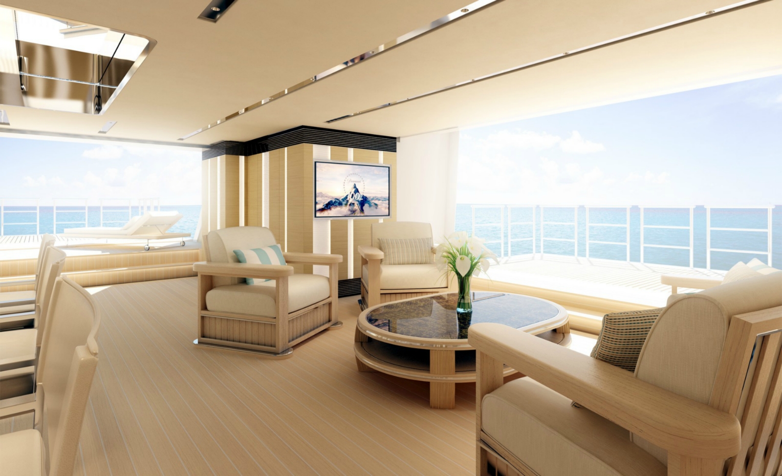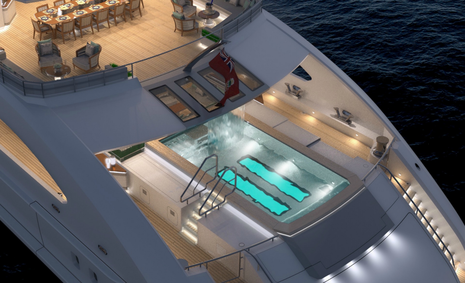 Shaded sun deck that includes sunpads