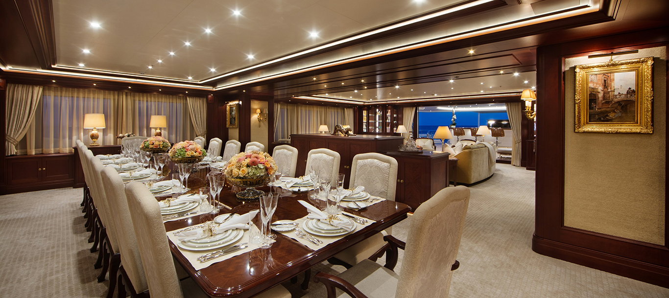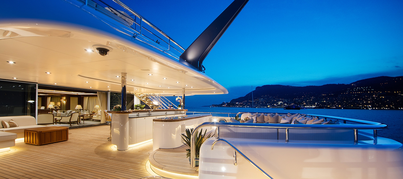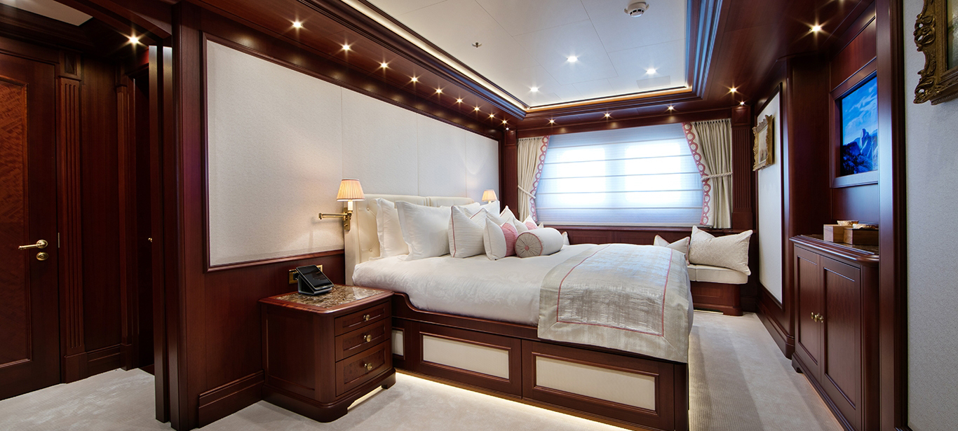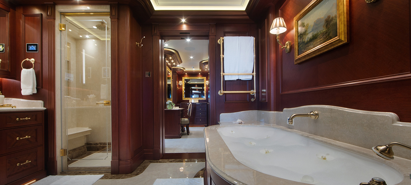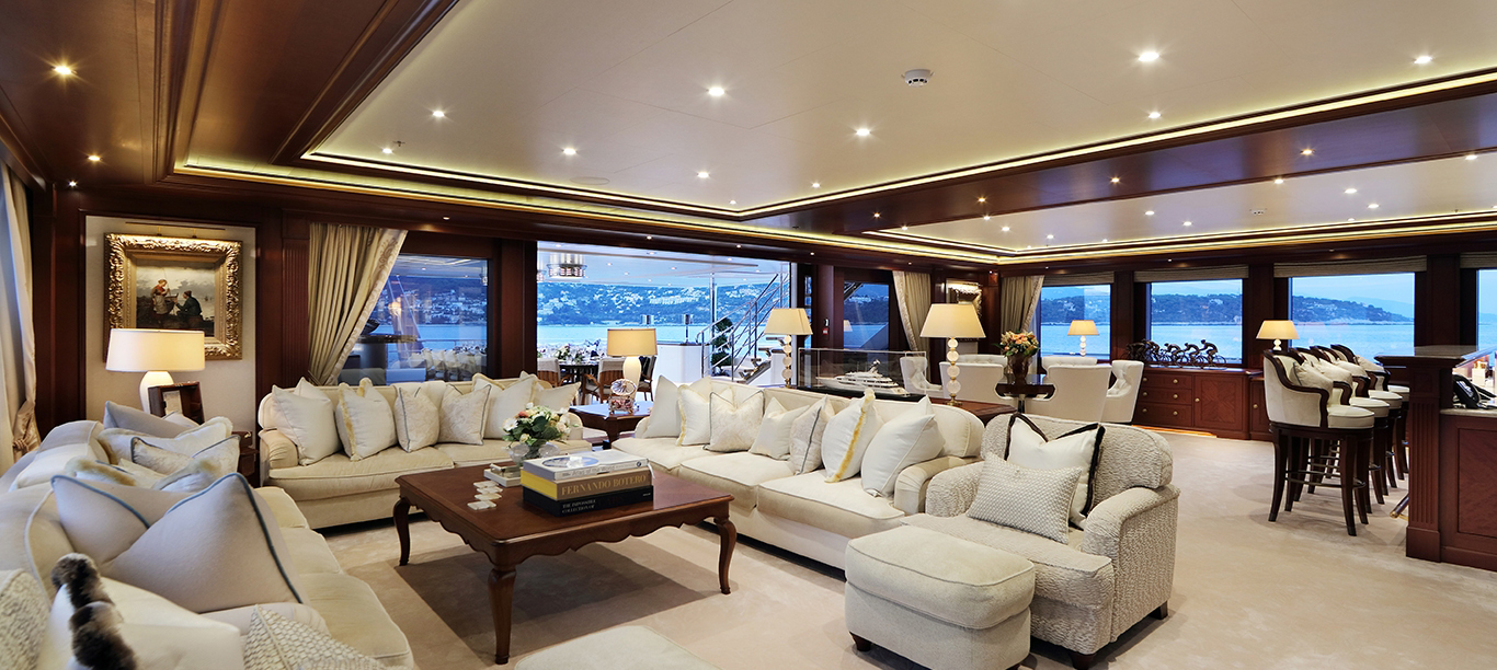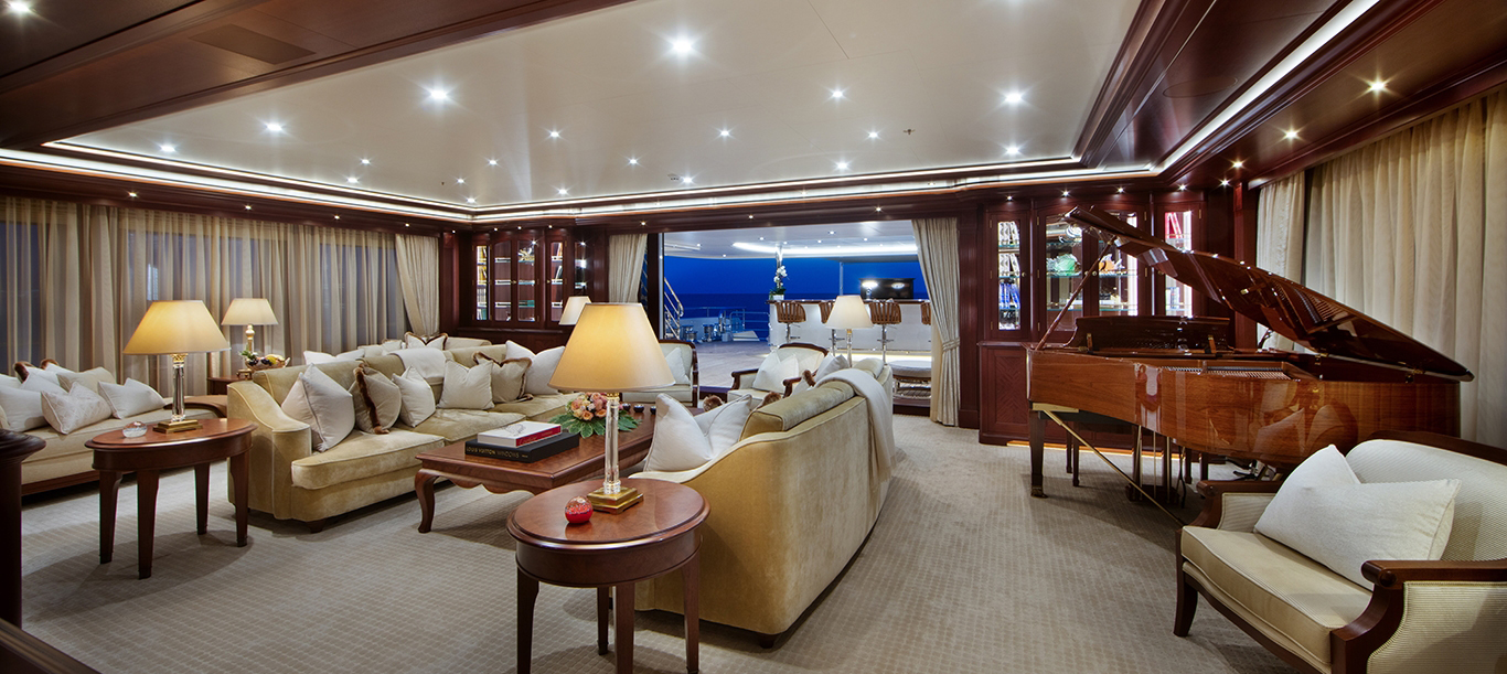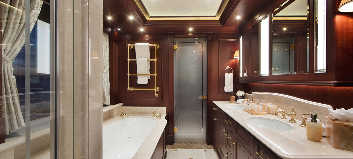 She was designed with entertaining in mind, and accommodates 18 guests in 9 en suite staterooms plus staff. The Owner's stateroom is complete with his and hers baths and wardrobes. Boasting an array of comforts and amenities including a helipad, sports room for water and land toys, a spa and beach club. Guests will marvel in the excellent exterior deck space including a Jacuzzi.