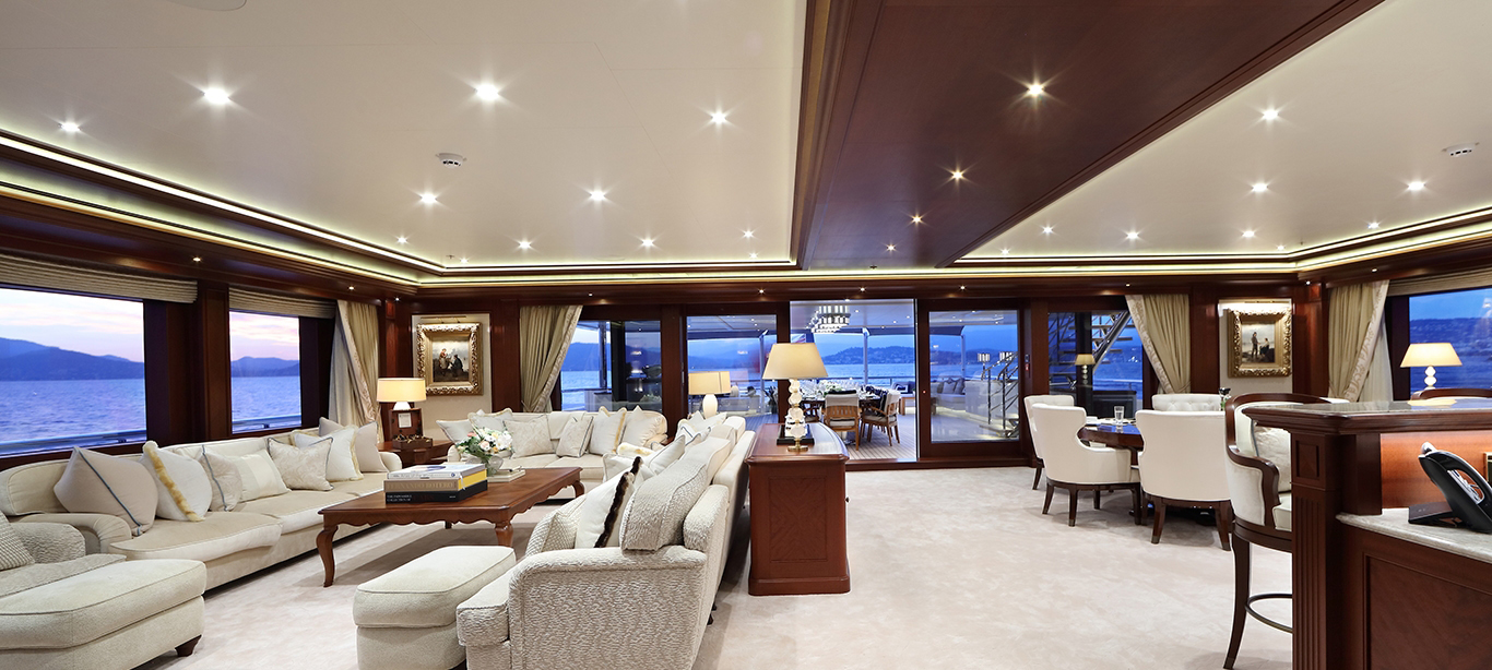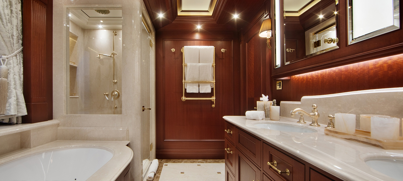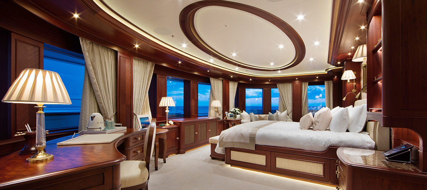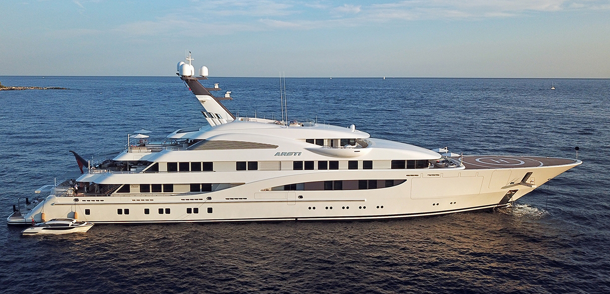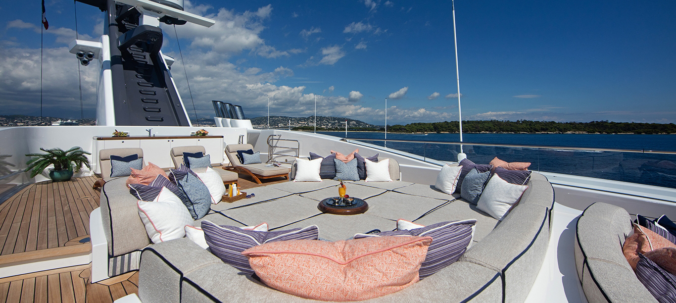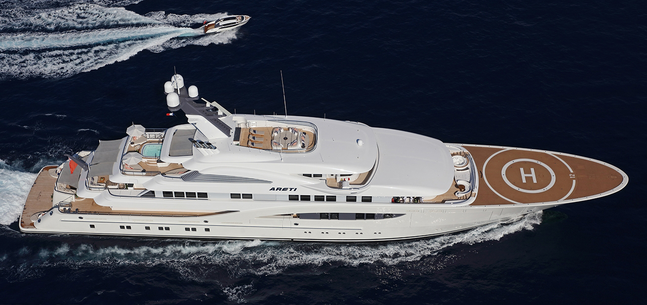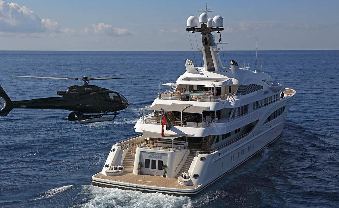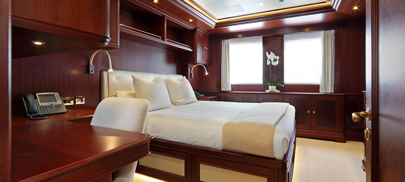 She was designed with entertaining in mind, and accommodates 18 guests in 9 en suite staterooms plus staff. The Owner's stateroom is complete with his and hers baths and wardrobes. Boasting an array of comforts and amenities including a helipad, sports room for water and land toys, a spa and beach club. Guests will marvel in the excellent exterior deck space including a Jacuzzi.