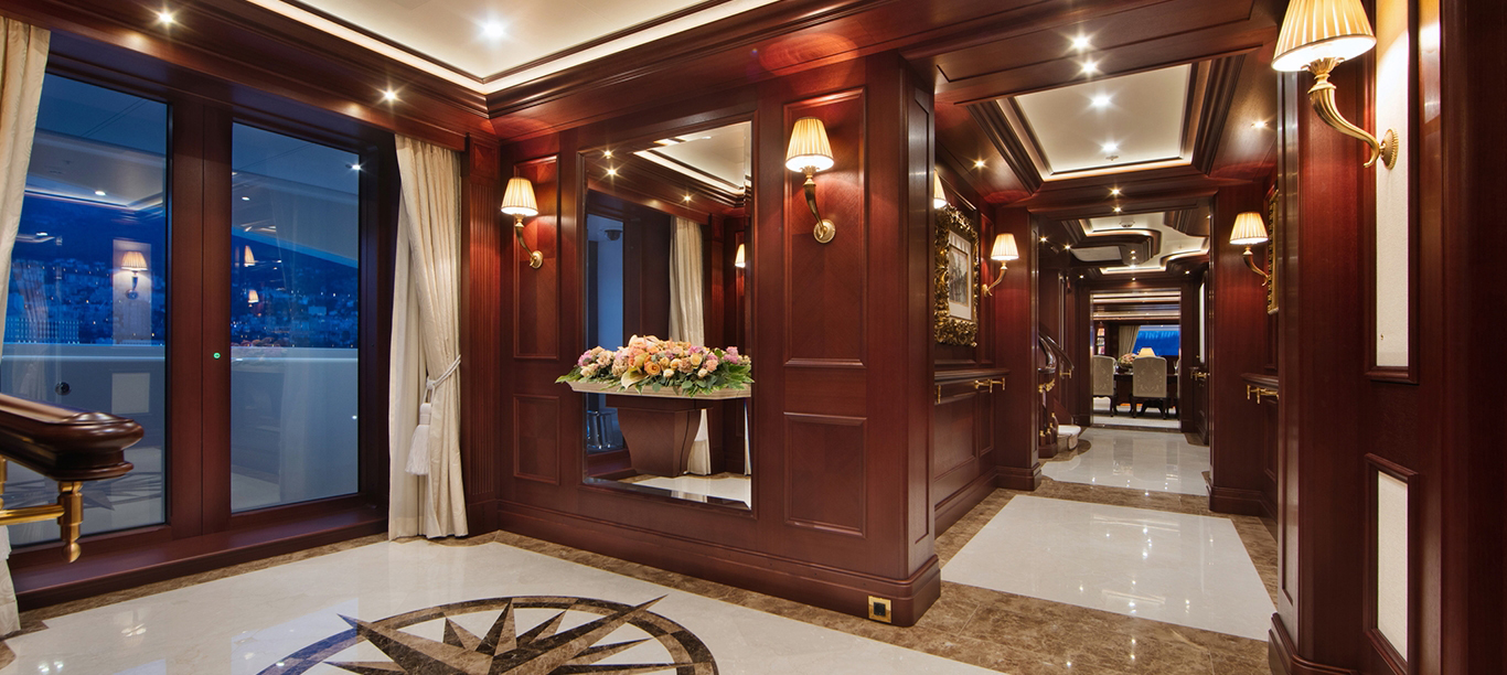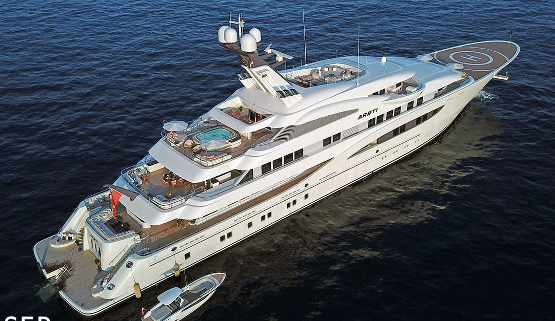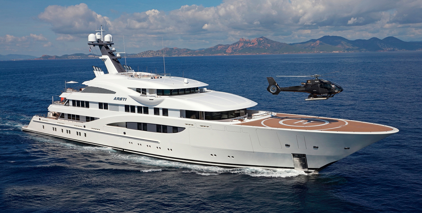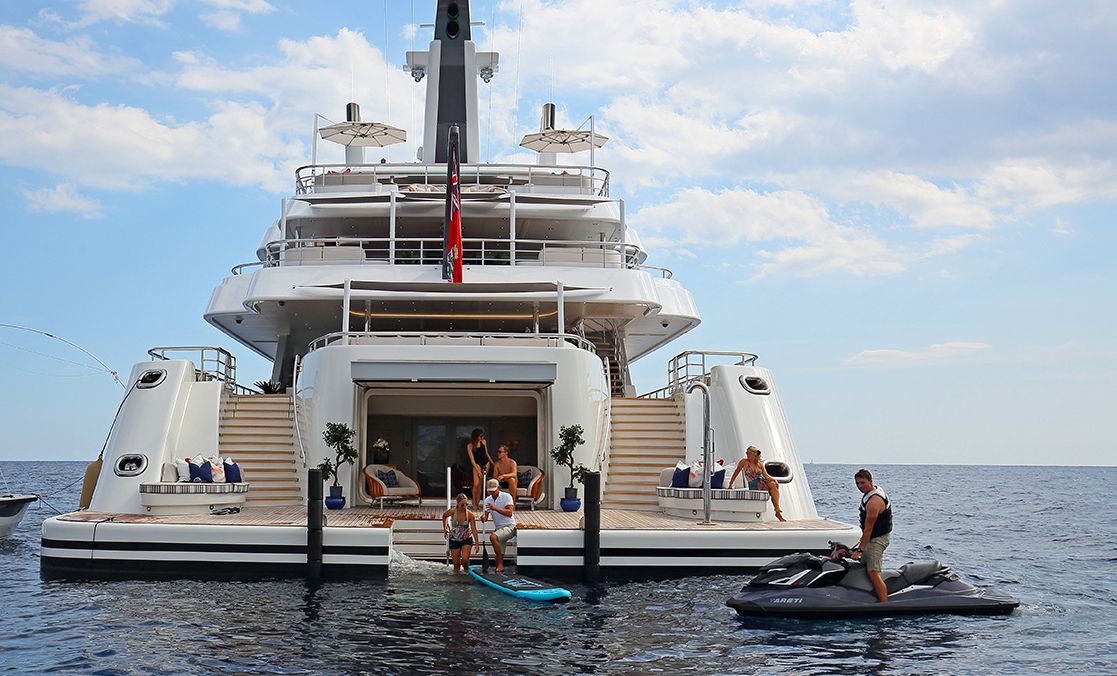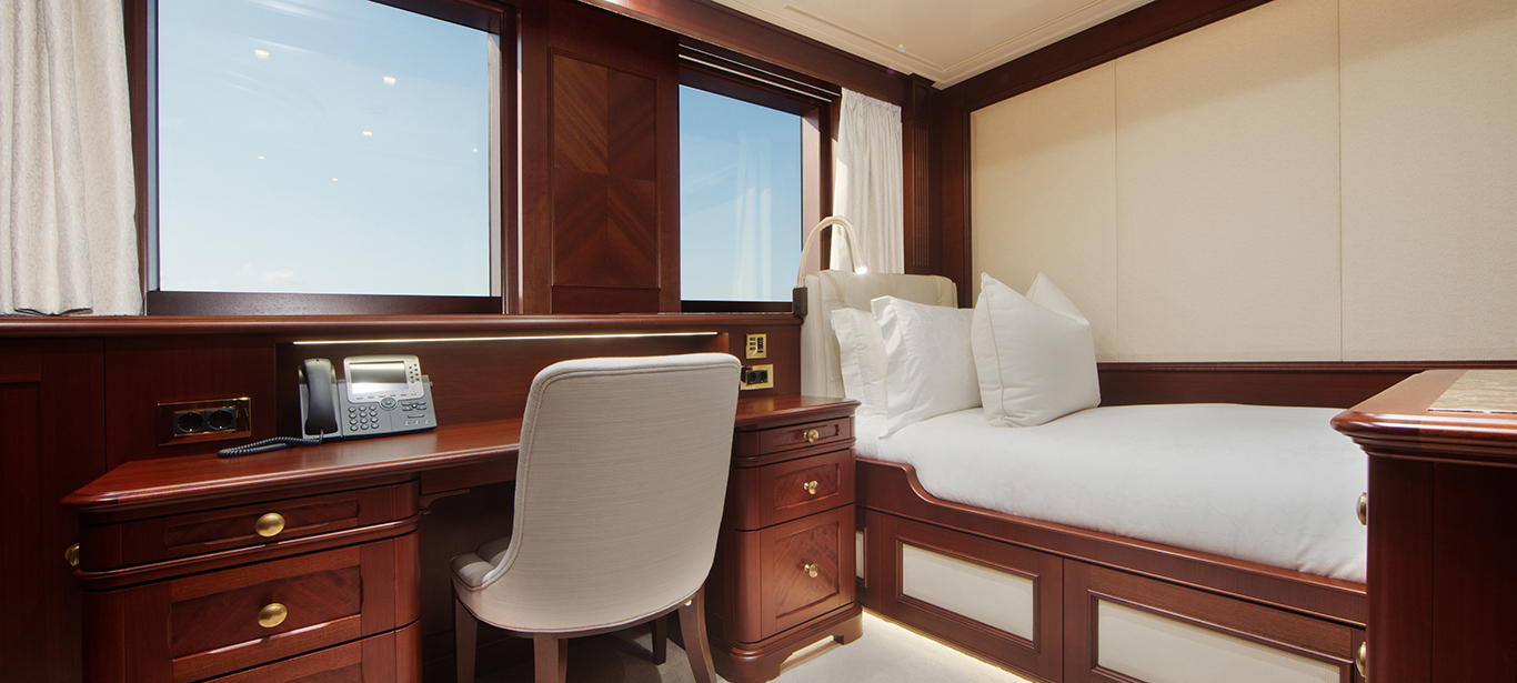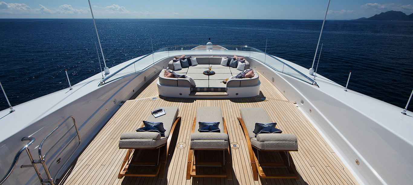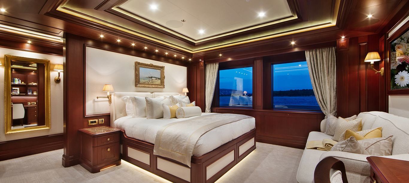 She was designed with entertaining in mind, and accommodates 18 guests in 9 en suite staterooms plus staff. The Owner's stateroom is complete with his and hers baths and wardrobes. Boasting an array of comforts and amenities including a helipad, sports room for water and land toys, a spa and beach club. Guests will marvel in the excellent exterior deck space including a Jacuzzi.